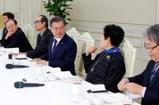 문재인 대통령은 20일 “5·18 민주화운동의 위대한 역사를 왜곡·폄훼하는 일부 망언이 계속된 데 대해 분노를 느낀다”고 말했다. 문 대통령은 이날 청와대에서 5·18 민주화운동 광주지역 원로들과 오찬 간담회를 갖고 이같이 언급한 뒤 “진상규명은 끝까지 이뤄져야 한다는 약속과 함께 5·18 역사에 대한 폄훼 시도에 대해서는 저도 함께 맞서겠다”고 밝혔다고 고민정 청와대 부대변인이 서면 브리핑에서 전했다. 문 대통령이 자유한국당 발(發) ‘5·18 망언’ 파문을 거론하며 직접 비판한 것은 지난 18일 주재한 청와대 수석·보좌관 회의에 이어 두 번째다. 당시 문 대통령은 이들 망언을 “민주화 역사와 헌법 정신을 부정하는 것”, “민주주의를 훼손하고 나라의 근간을 무너뜨리는 일”이라고 비판한 바 있다. 문 대통령은 오찬에서 “광주 어르신들이 추운 날씨에도 5·18 역사 왜곡을 바로잡으려는 모습을 보며 감사한 마음과 함께 송구스러운 마음이 들었다”며