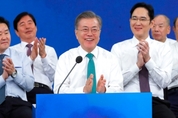 문재인 대통령이 15일 오후 청와대 영빈관에서 '기업이 커가는 나라, 함께 잘사는 나라'라는 슬로건으로 열린 '2019년 기업인과의 대화'에서 참석자들과 함께 박수를 치고 있다. /연합뉴스