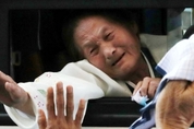 제21차 이산가족 상봉행사 2회차 마지막 날인 26일 북한 금강산호텔에서 열린 작별상봉 및 공동중식을 마치고 버스에 오른 북측 가족들이 남측 가족들과 헤어지며 눈물을 흘리고 있다. /연합뉴스