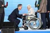 주경기장 중앙무대 폭포 설치 4천여명 무희 등 볼거리 다채 배드민턴영웅 수산티 성화 점화 주경철·임영희 남북 공동기수 한반도기 흔들며 200여명 뒤따라 ‘코리아’ 입장순간 우레같은 박수 세계 최대의 섬나라 인도네시아의 수도 자카르타의 밤하늘에 아시아 인구 45억 명이 뿜어낸 에너지가 크게 용솟음쳤다. 아시아 최대 국제 종합 스포츠대회인 제18회 자카르타·팔렘방 아시안게임이 18일 오후 9시 자카르타 겔로라 붕 카르노(GBK) 주 경기장에서 화려한 막을 올렸다. 헬멧을 쓰고 오토바이를 탄 코믹한 영상의 주인공 조코 위도도(일명 조코위) 인도네시아 대통령이 친근한 웃음과 함께 경기장에 등장하자 공식 행사는 시작됐다. 길이 120m, 높이 26m, 폭 30m로 제작돼 중앙에 자리한 특설 무대에선 폭포가 시원하게 물줄기를 내뿜는 등 산과 식물을 비롯해 인도네시아의 아름다운 자연을 구현한 장치로 구성됐다. 4천 명의 무희들은 열을 지어 앉아 형형색색의 의상과 일사불란한 몸동작으로 다채로운 볼거리를 선사하며 아시안게임에 출전한 45개 나라 1만1천여 명의 선수단을 환영했다. 알파벳 순서에 따라 아프가니스탄 선수단이 가장