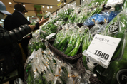 농림수산품 생산자물가 상승률이 1년 6개월 만에 최고를 기록했다. 한국은행에 따르면 ‘2018년 2월 생산자물가지수’는 103.99(2010=100)로 전달대비 0.4% 상승했다. 한파와 폭설, 설 명절 영향으로 오름폭이 컸던 농축산물은 무(84.2%), 수박(54.4%), 풋고추(53.7%), 닭고기(17.5%) 등의 상승률을 보였다. 사진은 20일 서울시내 한 대형마트에서 고추를 고르는 시민./연합뉴스