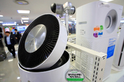 초미세먼지가 기승을 부리고 황사까지 유입되는 날씨 속에 17일 서울 시내의 한 가전매장에 각종 공기청정기가 진열돼 있다./연합뉴스