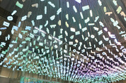 개장을 10일 남겨둔 인천공항 제2여객터미널에서 8일 오후 작업자들이 입국장에 한글자모를 이용한 조형미술작품을 설치하고 있다. /연합뉴스