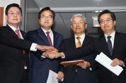 ‘세계 최강’ 한국 펜싱 남자 사브르 대표팀이 국제펜싱연맹(FIE) 월드컵 단체전에서 금메달을 목에 걸었다. 구본길, 김정환(이하 국민체육진흥공단), 오상욱(대전대), 김준호(국군체육부대)로 구성된 남자 사브르 대표팀은 3일(현지시간) 프랑스 죄르에서 열린 월드컵 단체전 결승에서 이탈리아를 45-35로 꺾고 우승을 차지했다. 올해 7월 세계선수권대회에서 한국의 사상 첫 단체전 우승을 합작한 이들은 올 시즌 첫 월드컵 금메달을 따내며 팀 랭킹에서 세계 1위를 지켰다. 한국은 8강에서 프랑스와 접전 끝에 45-43으로 신승했고, 준결승에서는 러시아에 45-29로 완승해 결승에 진출했다. 결승전에서는 세계랭킹 2위 이탈리아와의 맞대결에서 승리를 거뒀다. 대표팀의 막내 오상욱은 전날 개인전에 이어 단체전에서도 우승해 2관왕에 올랐다./연합뉴스