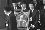 故김주혁 영결식 “이제 평온하게 잠드세요. 영원히 기억할게요.” 불의의 사고로 숨진 배우 김주혁의 마지막 가는 길은 외롭지 않았다. 2일 오전 서울 송파구 서울아산병원에서 열린 영결식과 발인에는 연예계 수많은 동료가 참석해 그의 마지막 길을 배웅했다. 오전 10시 열린 영결식은 종교의식 없이 유족과 소속사 나무엑터스 임직원, 황정민·정진영 등 동료 배우들이 참석한 가운데 40분간 비공개로 치러졌다. 유족들은 고인의 생전모습을 담은 영상을 함께 보여 고인과 관련한 추억을 떠올리며 눈시울을 적셨다. 이후 11시 발인에는 황정민·정진영·유준상·김지수·도지원·천우희 등과 차태현·유호진 PD·데프콘 등 ‘1박2일’ 멤버 등 100여 명이 함께 했다. 유족들은 고인이 미소 짓는 모습의 흑백 영정을 품에 안고 무거운 발걸음으로 운구 차량에 올랐다. 고인의 연인 이유영은 한참 동안 고개를 숙이며 고인을 기린 뒤 운구차에 탑승했다. 병원 주변에는 200여명의 팬이 몰려 고인을 눈물 속에 배웅했다. 고인은 화장 절차를 거친 뒤 충남 서산에 있는 가족 납골묘에 안장됐다. 김주혁은 지난달 30일 불의의 교통사고로 숨졌다. 평소 인간미 넘쳤던 그의 죽음에 수많은 연예계 동료, 선후