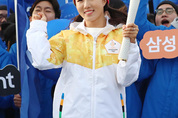 2018 평창동계올림픽 개막을 100일 앞둔 1일 오후 인천대교에서 열린 성화봉송 세리머니에서 스피드스케이팅 국가대표 이상화가 성화를 들고 파이팅을 외치고 있다./연합뉴스