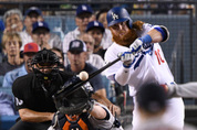 25일 미국 캘리포니아주 로스앤젤레스 다저스타디움에서 열린 메이저리그 월드시리즈 1차전 로스앤젤레스 다저스와 휴스턴 애스트로스의 경기에서 다저스의 저스틴 터너가 6회말 2사 후 2점 홈런을 치고 있다./연합뉴스