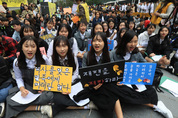 18일 오후 서울 종로구 주한일본대사관 앞에서 한국정신대문제대책협의회(정대협) 주최로 열린 ‘일본군 성노예 문제 해결을 위한 정기 수요시위’에서 참가자들이 위안부 문제 해결을 촉구하고 있다. /연합뉴스