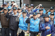 18일 오전 인천시 중구 자유공원 인천학도의용대호국기념탑 앞에서 열린 ‘제19회 인천학도의용대 전사자 및 작고회원 합동추모제’에서 학도의용대 회원들이 경례하고 있다. /연합뉴스