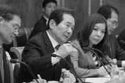 러시아를 방문 중인 정세균 국회의장이 12일 모스크바 하원 청사에서 열린 뱌체슬라프 볼로딘 러시아 하원 의장과 회담에서 인사말을 하고 있다. /연합뉴스