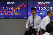 코스피가 이틀 연속 장중 사상 최고치를 경신하며 2,474.76 으로 마감했다. 12일 오후 서울 중구 을지로 KEB 하나은행 본점 딜링룸에서 딜러들이 업무를 보고 있다./연합뉴스