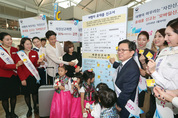 추석 황금연휴를 앞두고 27일 오전 인천공항 여객청사 출국장에서 열린 ‘추석연휴 여행자 성실신고캠페인’에서 노석환 인천본부세관장과 해외여행자들이 대형모형 세관신고서에 성실신고 다짐 스티커를 부착하는 퍼포먼스를 하고 있다. /연합뉴스