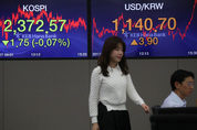 코스피가 1.75포인트 하락한 2,372.57로 장을 마감한 27일 오후 서울 중구 을지로 KEB하나은행 본점 딜링룸에서 딜러들이 업무를 보고 있다./연합뉴스