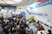 26일 오후 서울 광진구 건국대학교에서 열린 ‘2017 전력그룹사 합동 채용박람회’에서 구직자들이 채용상담을 하고 있다./연합뉴스