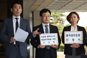 이명박 정부 당시 국가정보원의 ‘블랙리스트’에 올라 차별을 받은 것으로 알려진 피해 문화예술인들이 이명박 전 대통령 등 관련자들을 검찰에 고소했다. 국정원 문화계 블랙리스트 책임자 처벌을 위한 고소 대리인단이 25일 오후 서울 서초동 서울중앙지검 앞에서 고소장 제출에 앞서 기자회견을 하고 있다./연합뉴스