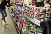 19일 오전 서울 중구 롯데마트 서울역점에서 한 고객이 고양이를 키우는 사람이 늘어나면서 매출이 크게 증가한 반려묘 용품을 고르고 있다./연합뉴스