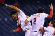 마이애미戰 9회말 6-7·1사만루 대타 나와 우익수앞 안타 2타점 유니폼 찢기는 격한 축하 받은후 챌린지 판정서 홈 태그아웃 번복 필라텔피아, 끝내 연장 15회 승리 추신수, 2경기 연속 멀티히트 추신수(35·텍사스 레인저스)가 2경기 연속 멀티히트(한 경기 2안타 이상)로 좋은 타격감을 이어갔다. 추신수는 13일 미국 텍사스 주 알링턴 글로브 라이프 파크에서 열린 미국프로야구 2017 메이저리그 시애틀 매리너스와 홈경기에 2번 타자 우익수로 선발 출전해 5타수 2안타 1득점을 남겼다. 추신수의 타율은 0.263에서 0.265(495타수 131안타)로 소폭 올랐다. 1회 첫 타석에서 유격수 땅볼로 물러난 추신수는 3회 1사 1루에서 중견수 앞 안타로 포문을 열었다. 뒤이어 노마 마자라와 조이 갈로가 연속 안타를 터트렸고, 추신수는 시즌 89번째 득점을 올렸다. 5회에는 선두타자로 등장해 2루수 쪽 깊숙한 내야 안타로 출루했지만, 득점은 추가하지 못했다. 추신수는 7회 1사 1루 중견수 뜬공, 9회 2사 1루에서 유격수 땅볼로 아웃됐다. 텍사스는 시애틀에 3-10으로 패했다. 필라델피아 필리스의 김현수(29)는 이날 미국 펜실베이니아 주 필라델피아 시티즌스 뱅
