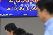11일 오후 서울 명동 KEB하나은행 딜링룸에 이날 코스피 종가가 표시 돼 있다. 코스피는 기관의 매수세로 2,359.08로 마감됐다./연합뉴스
