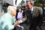 게르하르트 슈뢰더 전 독일 총리가 11일 오후 광주시 퇴촌면 나눔의집을 방문해 일본군 위안부 피해자 할머니들과 작별인사를 하고 있다./연합뉴스
