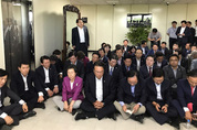 MBC사장의 체포영장 발부에 항의해 검찰을 항의 방문한 자유한국당 의원들이 4일 서울 서초구 대검찰청 8층 총장실 앞에서 연좌 시위를 벌이고 있다./연합뉴스