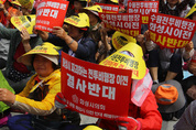 화성시 주민들이 29일 오후 서울 용산구 국방부 앞에서 수원제10전투비행단의 화성시로의 이전에 반대하는 집회를 하고 있다. /연합뉴스
