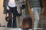 선선한 날씨를 보인 30일 오후 한 시민이 가을·겨울옷이 진열된 서울 강남구 신사동 가로수길의 한 의류매장 앞을 지나고 있다./연합뉴스