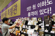 23일 오전 서울 강남구 코엑스에서 열린 2017 한가위 명절선물전에서 관람객이 5만원 이하 선물로만 구성된 ‘영란선물 특별관’을 살펴보고 있다./연합뉴스