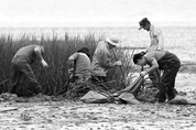 23일 오전 인천시 중구 예단포선착장 인근 갯벌에서 운북어촌계 관계자들이 ‘영국갯끈풀’을 제거하는 작업을 하고 있다. /연합뉴스
