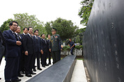 미얀마(Myanmar)를 공식방문 중인 정세균 국회의장 등 국회 대표단이 12일 오전(현지시간) 아웅산 국립묘지에 들러 대한민국 순국사절 추모비에 참배하고 있다./연합뉴스