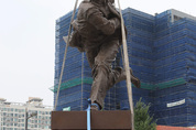 8일 의정부시 의정부역 광장 근린공원에서 시 관계자들이 중국 측이 기증한 안중근 동상을 설치하고 있다. /연합뉴스