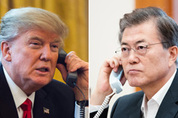 문재인 대통령이 7일 오전 청와대에서 도널드 트럼프 미국 대통령과 통화를 한 후 오후에는 아베 신조 일본 총리와 통화하고 있다. 트럼프 미 대통령과 아베 일본 총리는 자료사진./청와대제공, 연합뉴스