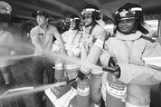 1일 오전 여주시 월송동 여주소방서에서 ‘제16회 걸스카우트 국제야영’에 참가한 방글라데시 대원들이 소화기 사용법을 배우고 있다. /연합뉴스