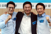 26일 오후 서울 여의도 바른정당 당사에서 열린 ‘남원정 앵콜쇼’에서 정병국 전 대표(왼쪽부터), 원희룡 제주지사, 남경필 경기지사가 토론에 앞서 포즈를 취하고 있다./연합뉴스