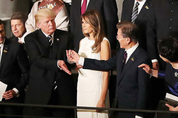 문재인 대통령이 7일 오후(현지시간) 독일 함부르크 엘부필하모니에서 열린 G20 정상회의 문화공연을 마치고 도널드 트럼프 미국 대통령과 반갑게 악수하고 있다. /연합뉴스
