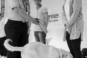 지난 23일 오후 인천시 중구 인천국제공항에서 열린 ‘인천본부세관 세계 마약퇴치의 날 기념행사’에서 마약탐지견 ‘산’이 마약을 소지한 여행객을 찾아내는 시연을 하고 있다. /연합뉴스