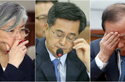 7일 국회에서 열린 강경화 외교부 장관 후보자(왼쪽부터), 김동연 부총리 겸 기획재정부 장관 후보자, 김이수 헌법재판소장 후보자에 대한 인사청문회에서 여야 위원들의 질문에 각 후보들이 힘든 표정을 짓고 있다. /연합뉴스