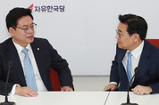 전병헌 청와대 정무수석(오른쪽)이 30일 오후 국회 자유한국당 원내대표실을 찾아 정우택 당대표 권한대행 겸 원내대표와 논의하고 있다./연합뉴스