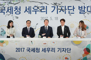 18일 오후 서울지방국세청에서 열린 ‘국세청 세우리 기자단 발대식’에서 임환수 국세청장(왼쪽 3번째), 기자단 및 기자단 멘토인 방송인 조우종(왼쪽 4번째)씨가 함께 축하 버튼을 누르고 있다. 세우리 기자단은 페이스북, 블로그, 카카오스토리 등 다양한 SNS와 어린이 세금 신문 등에 국세청의 주요 정책과 세금에 대한 읽을거리를 제공한다./연합뉴스