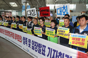 인천국제공항공사와 비정규직 정규직화 논의를 진행하기 위한 민주노총 공공운수노조의 ‘제대로 된 인천공항 정규직화 대책회의’ 발족 및 입장 발표 기자회견이 18일 오후 인천국제공항 여객터미널에서 열리고 있다. /연합뉴스