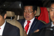 자유한국당 홍준표 대선후보가 9일 밤 "출구조사 결과가 사실이면 당을 재건한 것에 만족한다"는 기자회견을 마치고 서울 여의도 당사를 떠나는 차량에 오른후 침통한 표젇을 하고 있다. /연합뉴스