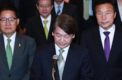 국민의당 안철수 대선후보가 19대 대선 투표일인 9일 오후 서울 여의도 국회 헌정기념관에 마련된 국민의당 선대위 개표상황실을 찾아 입장을 밝힌 뒤 고개를 숙이고 있다. /연합뉴스