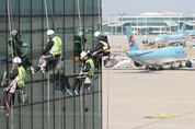 꽃샘추위가 풀리고 낮부터 기온이 평년수준으로 회복된 9일 오전 인천국제공항에서 직원들이 봄맞이 관제탑 물청소를 하고 있다. /연합뉴스
