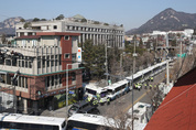 박근혜 대통령 탄핵 선고일인 10일 오전 서울 종로구 헌법재판소 주위로 경찰차벽이 에워싸고 있다 /연합뉴스