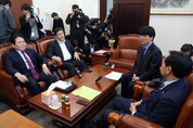 16일 서울 여의도 국회에서 여야 4당 원내교섭단체 원내수석부대표가 만나 대화를 하고 있다. 왼쪽부터 바른정당 정양석, 새누리당 김선동, 더불어민주당 박완주, 국민의당 김관영 원내수석부대표./연합뉴스