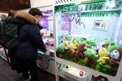 10일 서울 종로구의 한 인형 뽑기 방에서 한 시민이 인형 뽑기를 시도하고 있다. 전국 인형 뽑기방 수가 최근 2년 사이 24배 가량 증가하는 등 대표적인 ‘불황 업종’으로 꼽히는 인형 뽑기가 성행하고 있다./연합뉴스
