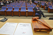 새누리 상임전국위 새누리당 안상수 상임전국위 임시의장이 9일 오후 국회에서 열릴 예정이던 상임전국위원회가 정족수 부족으로 개회되지 못하자 자리에 앉아 기다리고 있다. 새누리당 전국위원회는 6일 정족수 미달로 개회가 무산됐고, 이날 회의도 예정 시각에 성원이 부족해 개회가 연기된 상태다./연합뉴스
