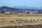 최근 포천시에서 폐사한 고양이의 고병원성 조류인플루엔자(AI) 확진 등 AI 문제가 쉬 해결되지 않고 있다. 해당 지자체가 AI 확산 주범으로 주목하는 철새 도래지나 닭·오리를 키우는 농가 방문 자제 등을 권고하는 ‘어린이·청소년 AI예방 행동수칙’을 발표한 가운데 8일 임진강 부근의 논에 기러기떼가 먹이활동을 하고 있다./연합뉴스