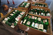 맥주와 소줏값이 연초부터 또 오른다. 주요 유통업체들이 빈 병 보증금 인상을 반영해 가격을 인상하기 때문이다. 5일 유통업계에 따르면 편의점과 대형마트들은 내주부터 맥주와 소주 판매가격을 차례로 올린다. 이날 오후 서울 성동구 이마트 성수점에서 직원이 회수된 빈 병을 정리하고 있다./연합뉴스