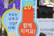 한국에너지공단 관계자들이 26일 오후 서울 중구 명동 일대에서 동절기 전력수급 위기대응 ‘문 열고 난방영업’ 자제 캠페인을 펼치고 있다./연합뉴스