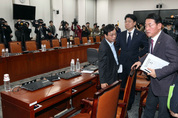 여야는 19일 ‘최순실 국정농단 게이트’ 진상규명을 위한 국정조사 특위의 청문회 과정에서 ‘사전 모의’, ‘위증 지시’ 등의 의혹에 휘말린 새누리당 이완영·이만희 의원의 특위위원 교체 문제를 놓고 신경전을 펼쳤다. 더불어민주당 우상호 원내대표는 이날 국회에서 열린 최고위원회의에서 “새누리당 소속 국조특위 위원 두 분이 최순실 씨의 측근들과 만나 모의를 했다고 한다”면서 “사실이라면 심각한 문제”라고 지적한 뒤 교체를 공개적으로 요구했다. 우 원내대표는 기자들과 만나서도 “최순실이 ‘입을 맞추라’고 했는데 이를 국회의원이 대행했다면 더 문제”라며 “과거 민주당도 국가정보원 국정조사 특위에서 김현 전 의원에 대한 제척 요구가 제기되자 뺀 적이 있다. 이번엔 명확한 증거까지 있는 만큼 그냥 넘어갈 수 없다”고 말했다. 윤관석 수석대변인도 “청문회에서 위증을 지시·교사했다면 특위 위원을 넘어 국회의원의 자격도 없다”며 “두 의원은 위원직에서